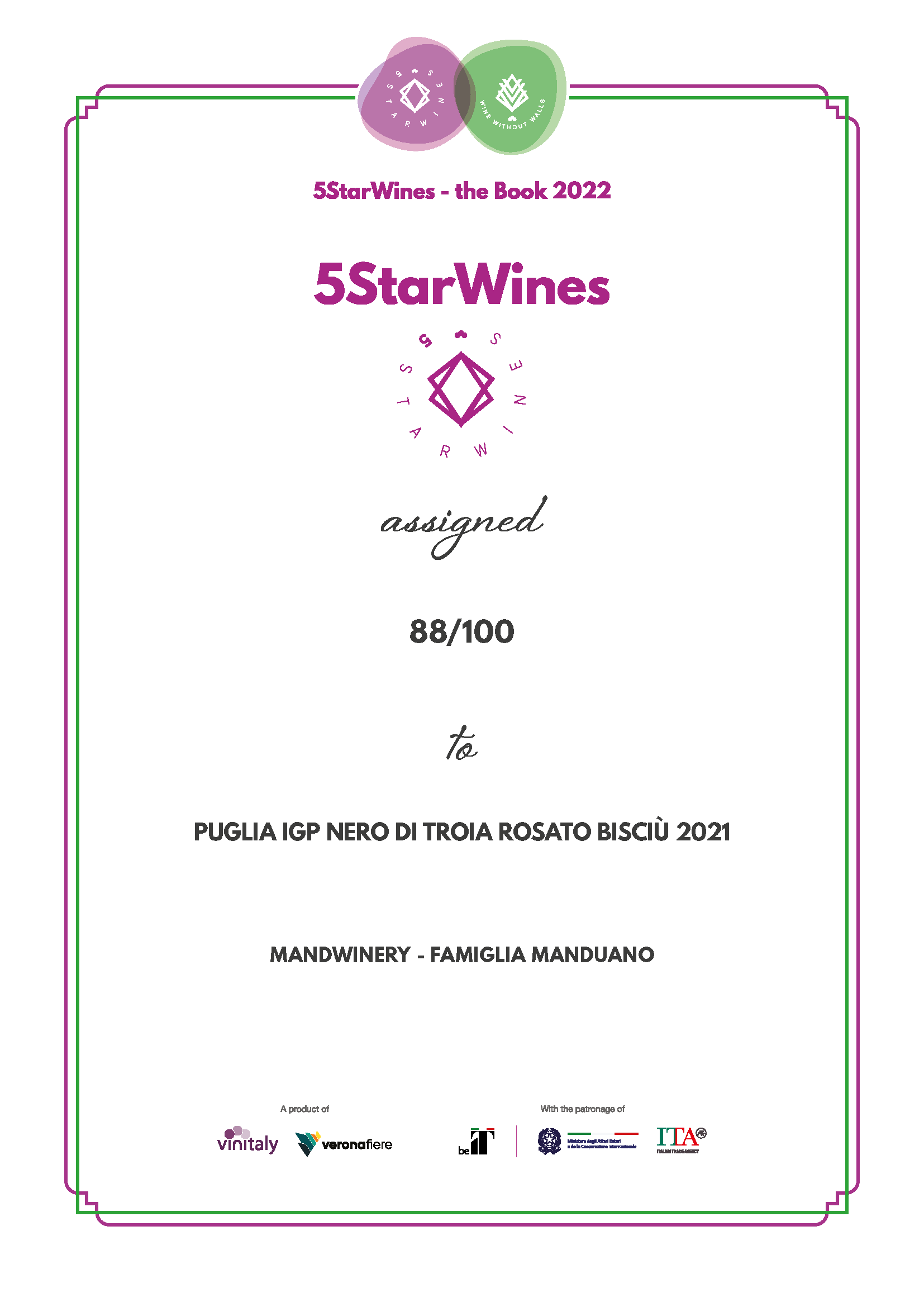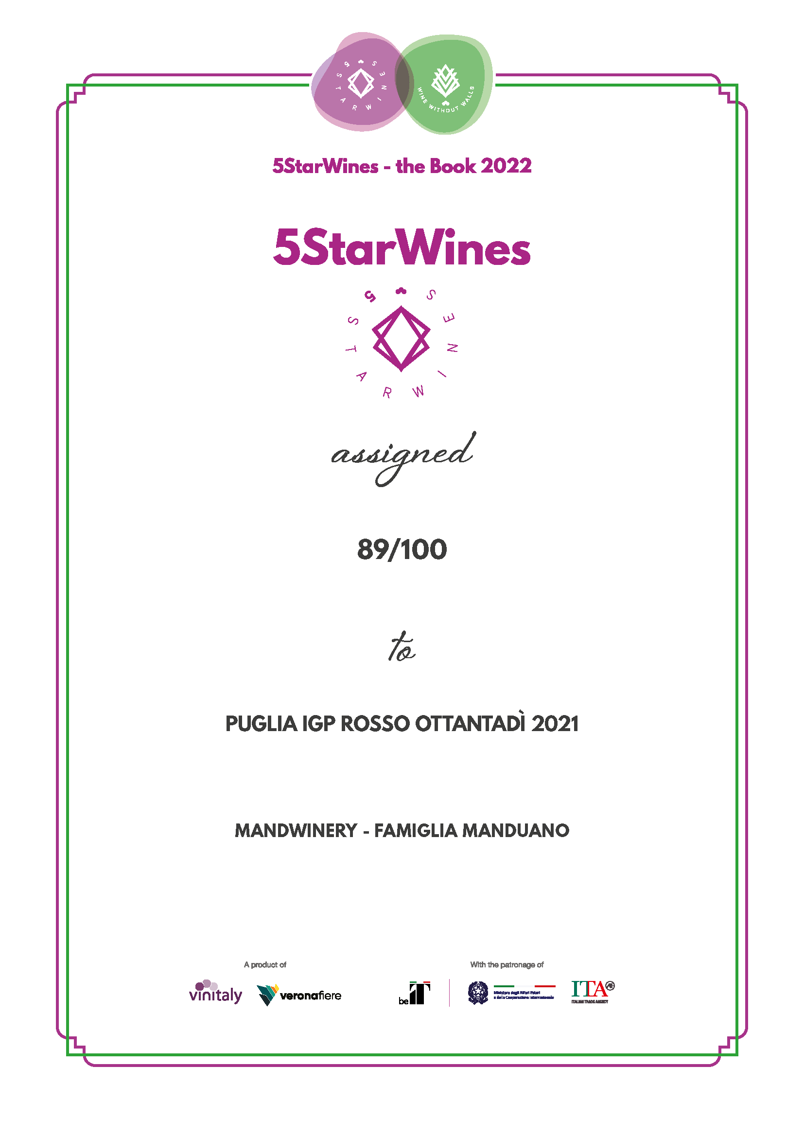 Le nostre tre referenze, PUGLIA IGP ROSSO OTTANTADÌ 2021 , PUGLIA IGP CHARDONNAY MAARÌ 2021 e PUGLIA IGP NERO DI TROIA ROSATO BISCIÙ 2021, già al loro esordio, si sono aggiudicate un punteggio pari a 89/100!