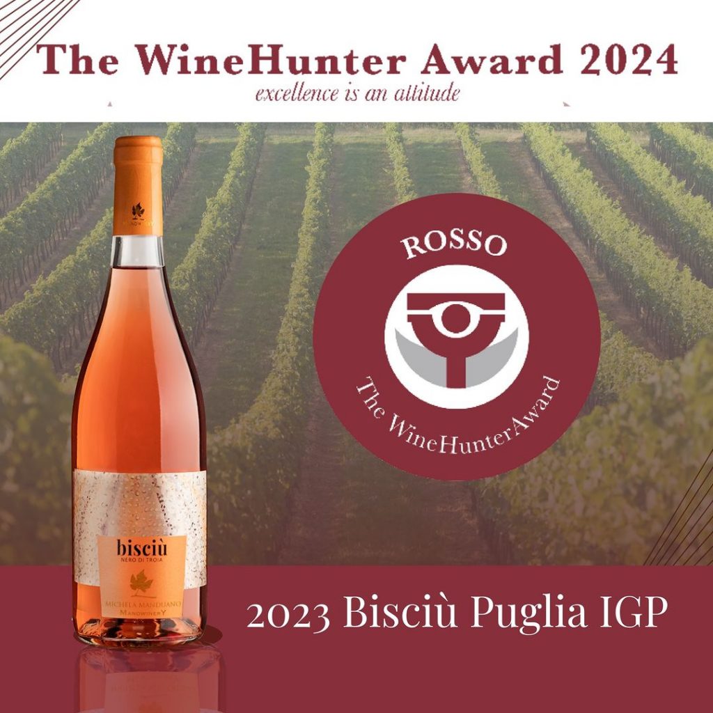 Siamo lieti di annunciarvi che il nostro Bisciù Nero di Troia Puglia IGP 2023 ha ottenuto il prestigioso “The WineHunter Award ROSSO”. Questo riconoscimento, conferito da Gourmet’s International e dedicato ai migliori vini e prodotti di alta qualità, testimonia il nostro costante impegno e la nostra passione per l’eccellenza.